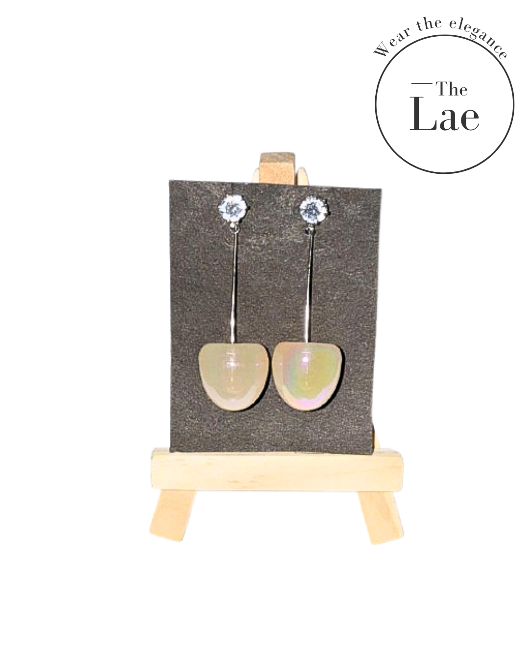 Inspired by morning dew kissed by sunlight, Auric Dew earrings combine soft opalescent hues with sleek metallic elegance. A symbol of subtle sophistication — made for the woman who lets her elegance speak quietly yet powerfully.